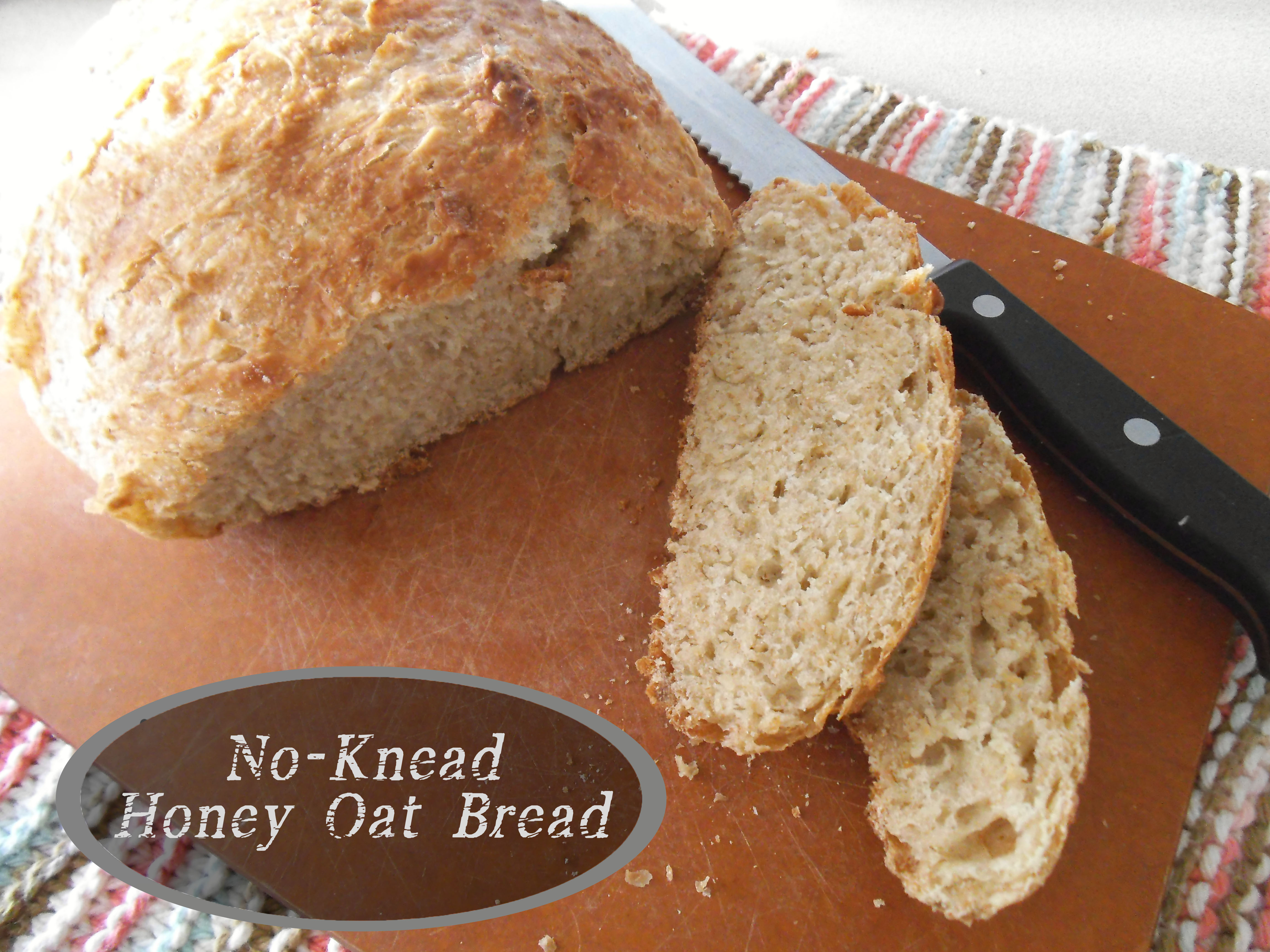 The oatmeal bread recipe I found did not seem like it would fit in my humble cookware collection, so I halved it. This way the dough fits into my 4-litre (= 1 gallon) mixing bowl when rising overnight and into my 2-litre (= 2 quart) baking dish in the oven. Instead of brown sugar, I prefer to use honey, which adds a heavenly aroma. For cost purposes and ease of pouring, I opted for oil instead of butter or margarine. See the results and judge for yourself. Then follow the recipe and taste the rich honey goodness for real. It is one of the simplest breads you’ll ever make!