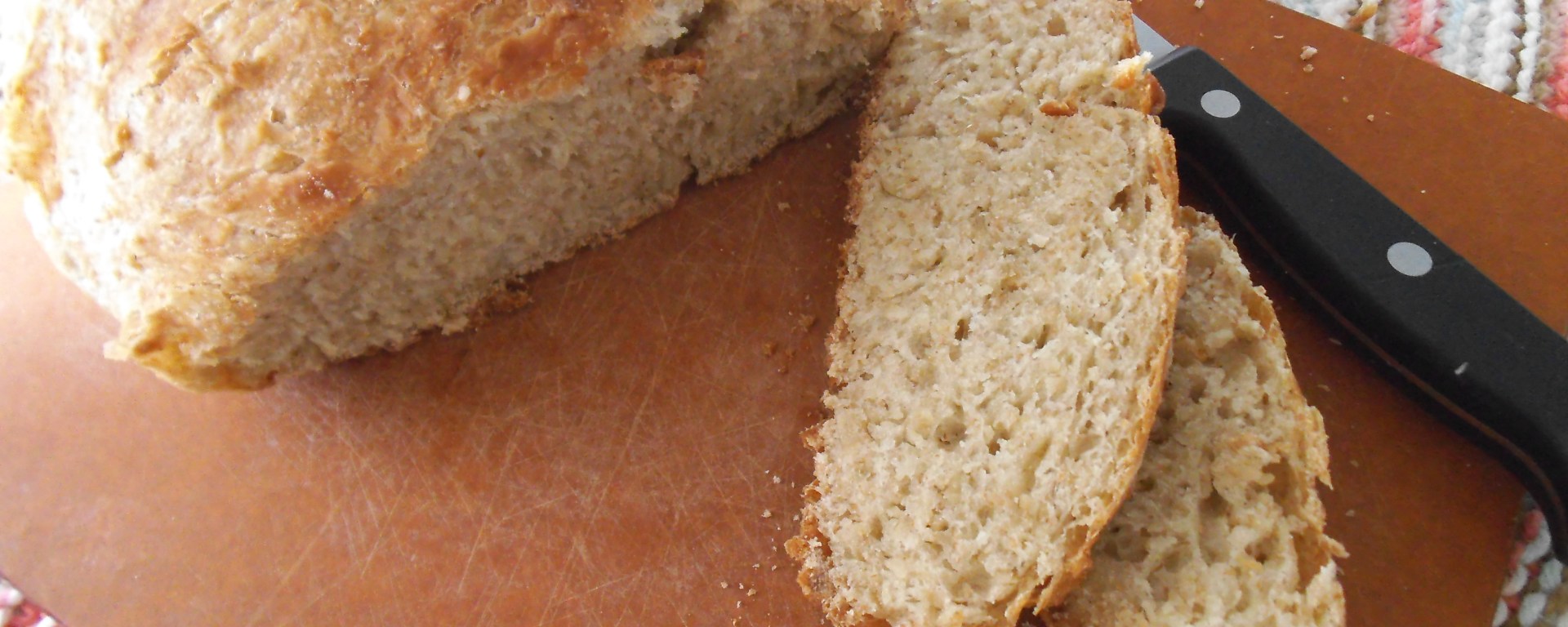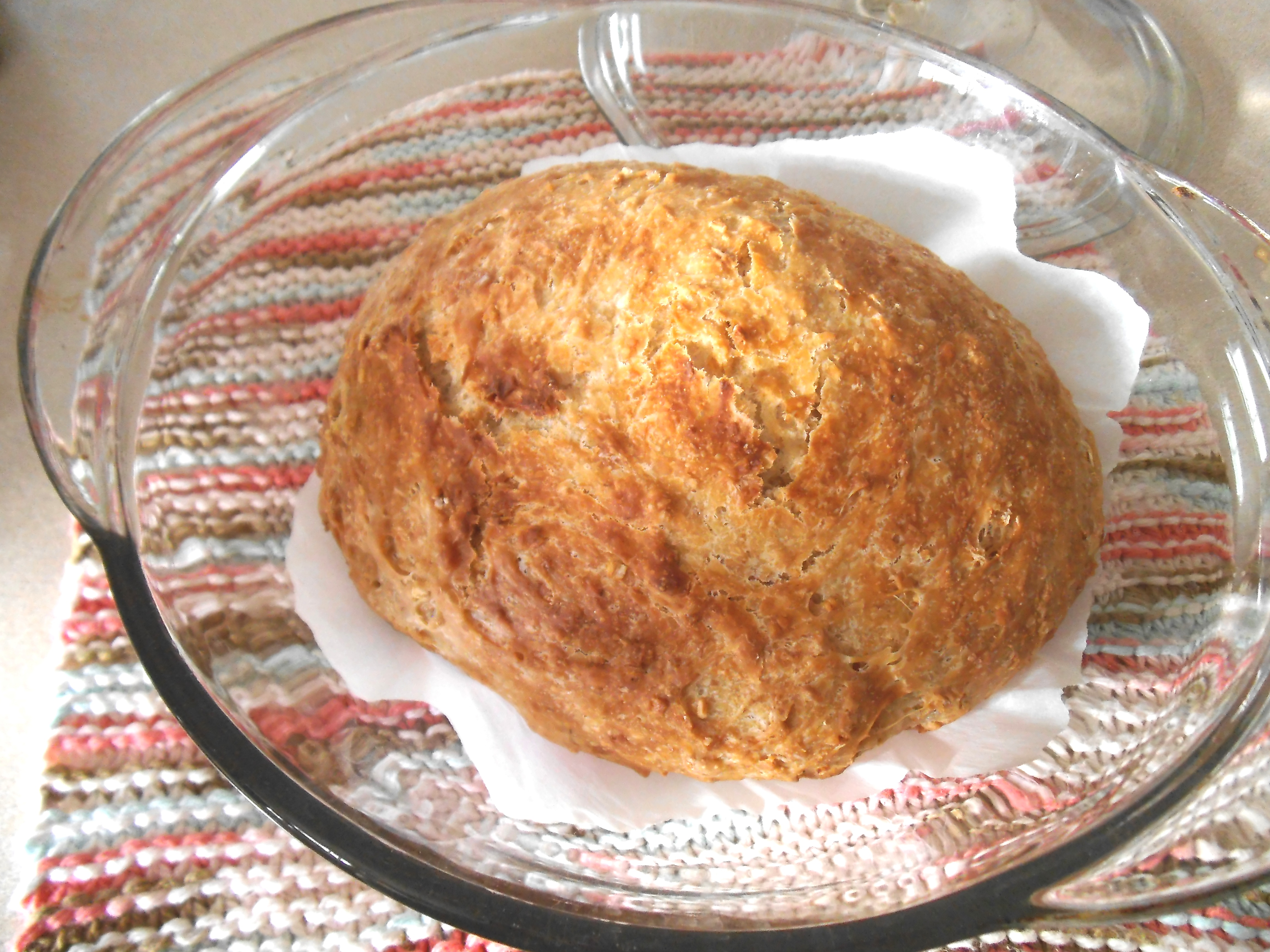 Recently I started making no-knead bread for the first time. Why? First of all, I work in the evening. Being able to throw together some dough in mere minutes after I come home is therefore quite appealing. Second, I have lost the kneading paddle component of my bread machine–for the second time. So waking up to fresh bread, courtesy of the timer function on the machine, can no longer happen. Thirdly, it is rare that I actually manage to allot the full three hours involved in making conventional yeast bread. And finally, everyone in my family adores fresh bread, especially in the morning. My love of bread means that I will probably never succeed at avoiding gluten for any length of time, but that’s okay.