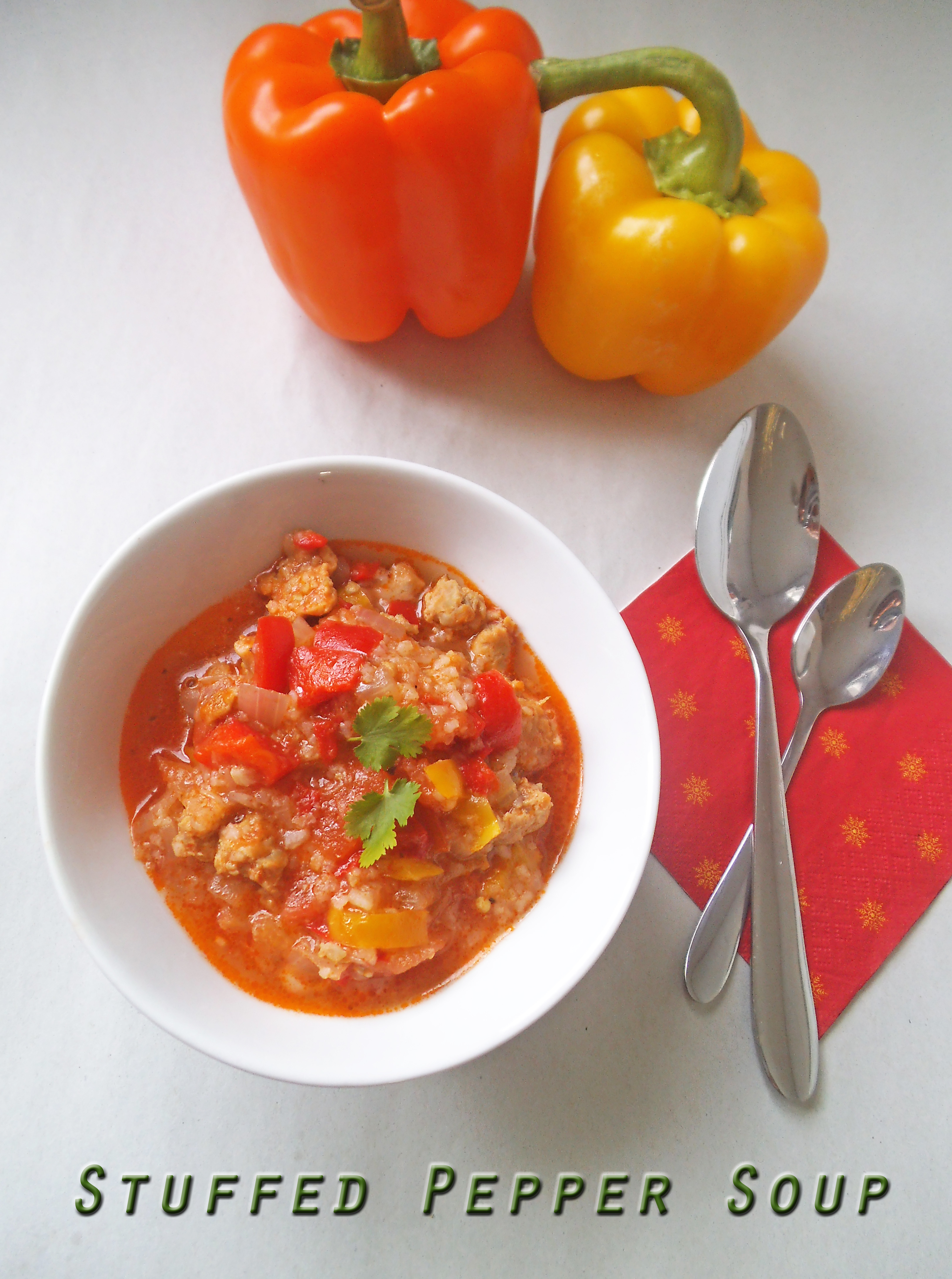 It’s the most wonderful and most activity packed time of the year!  A gloriously simple supper of rich soup is an ideal weeknight meal solution.  My friend Jessica shared this this delicious stuffed pepper soup with me, and I know your family will love it too!  It is great to have a hearty homemade soup that comes together in less than an hour, with most of that time being hands-off while it simmers.  You can also tossed the browned meat in your slow cooker, along with the other ingredients, and let it cook on low while you are out for the day.  Enjoy!