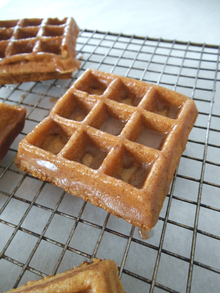 - To glaze the waffles, dip one side of each waffle into the glaze. Or serve waffles with cinnamon maple syrup or Pumpkin Spice Ice Cream.