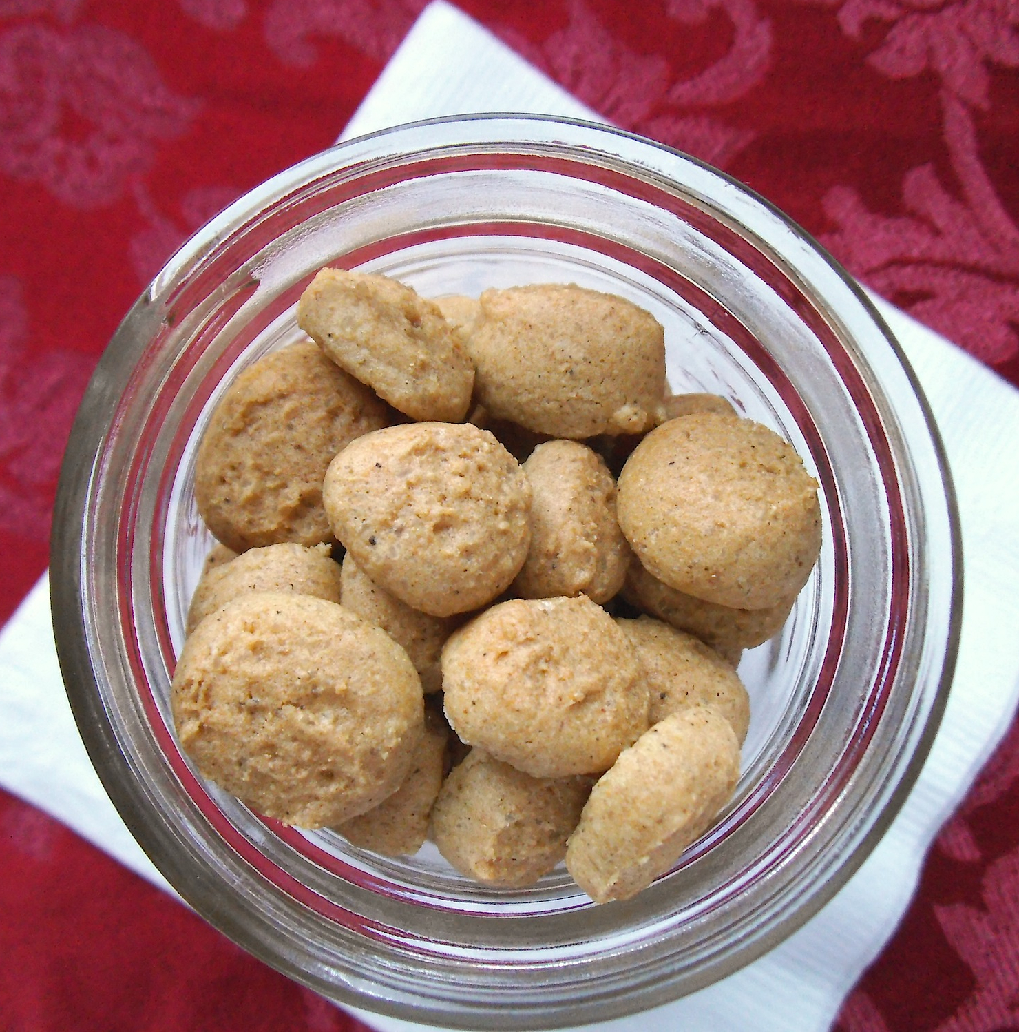 Happily, the pepper nuts tasted just right.  The anise flavour was present, but it did not overpower the other spices.  The cloves, cinnamon, nutmeg, ginger, and five spice all play nicely together.Pepper Nuts | Swirls and SpicePepper nuts beg to be poured into jars for gifting.  But don’t forget to reserve some for your own holiday gatherings.  After tasting and enjoying these tiny cookies by the handful, I expect these will be appearing at our house for years to come.  And frankly, I’ll take homemade pepper nuts over Chex mix any day!
