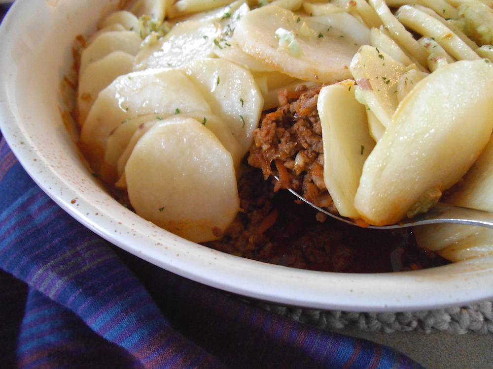 After searching high and low for a sloppy joe casserole that was gluten and dairy free, I made my own version for supper last night. My family loves it when I make garlic potatoes as a side dish. Why not put them on top of a casserole?